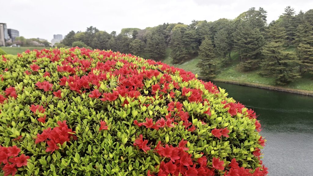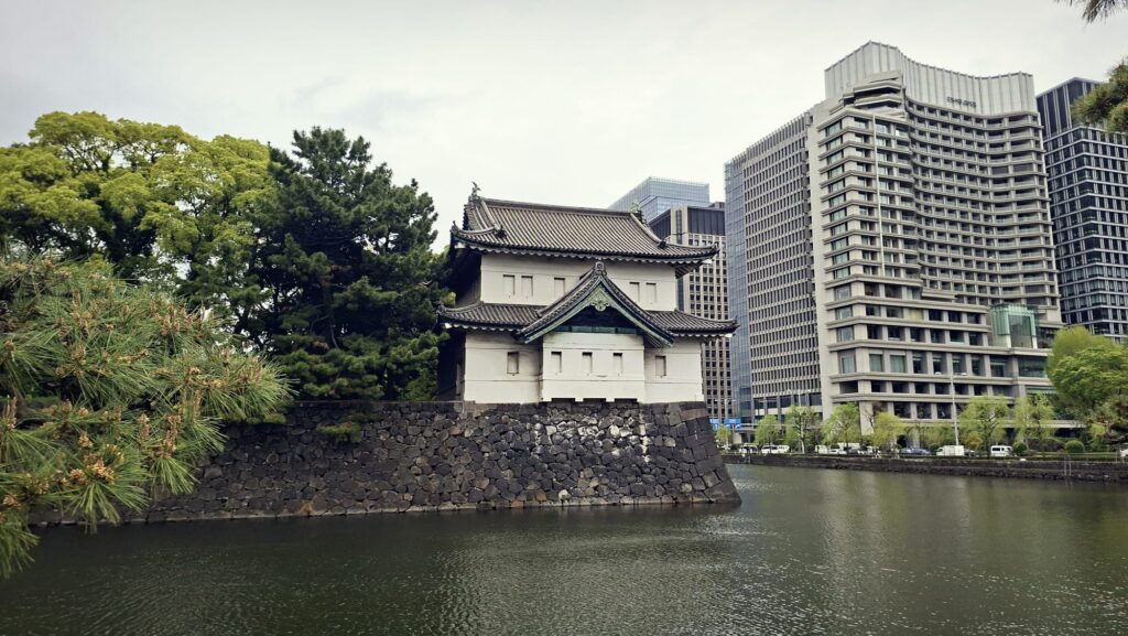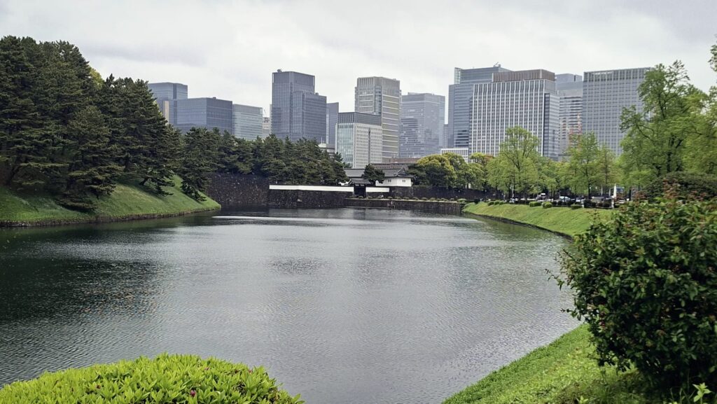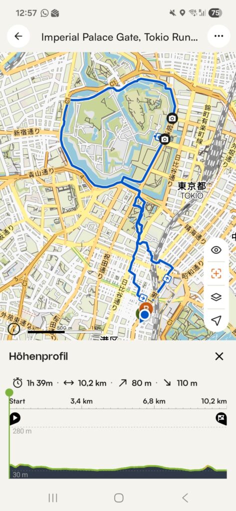 So würde die Tour heißen, wenn sie in einem Wohnungsinserat beschrieben wäre. Meine heutige Joggingstrecke, gegen den Uhrzeigersinn, rund um den Kaiserpalast in Tokio ist auf der einen (linken) Seite sehr eindrucksvoll mit unterschiedlichsten Perspektiven auf Eingangsbereiche des Kaiserpalasts und des östlichen Gartens. Andererseits fließt auf der rechten Seite kontinuierlich der Verkehr.