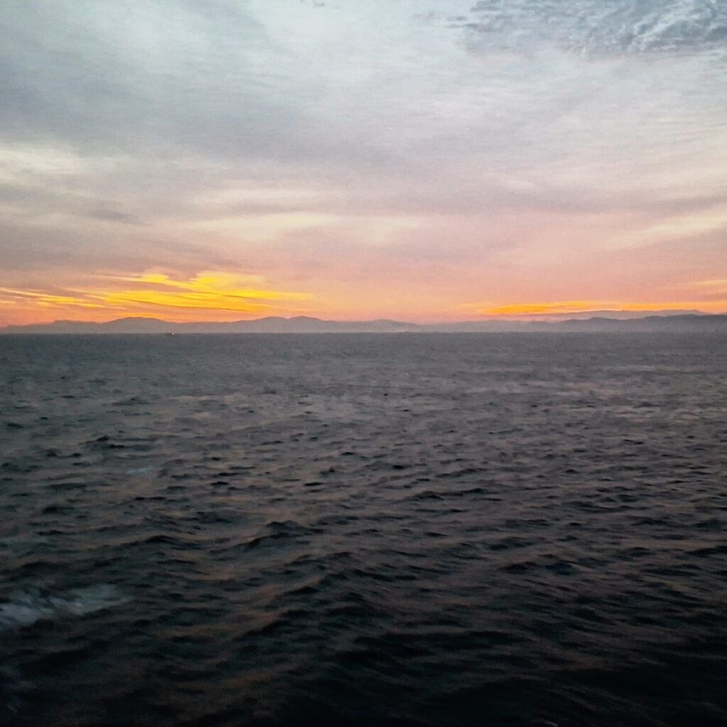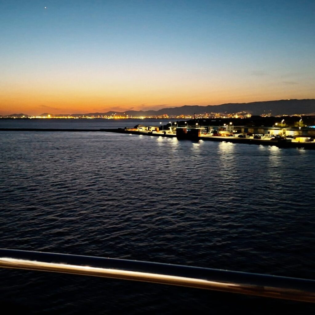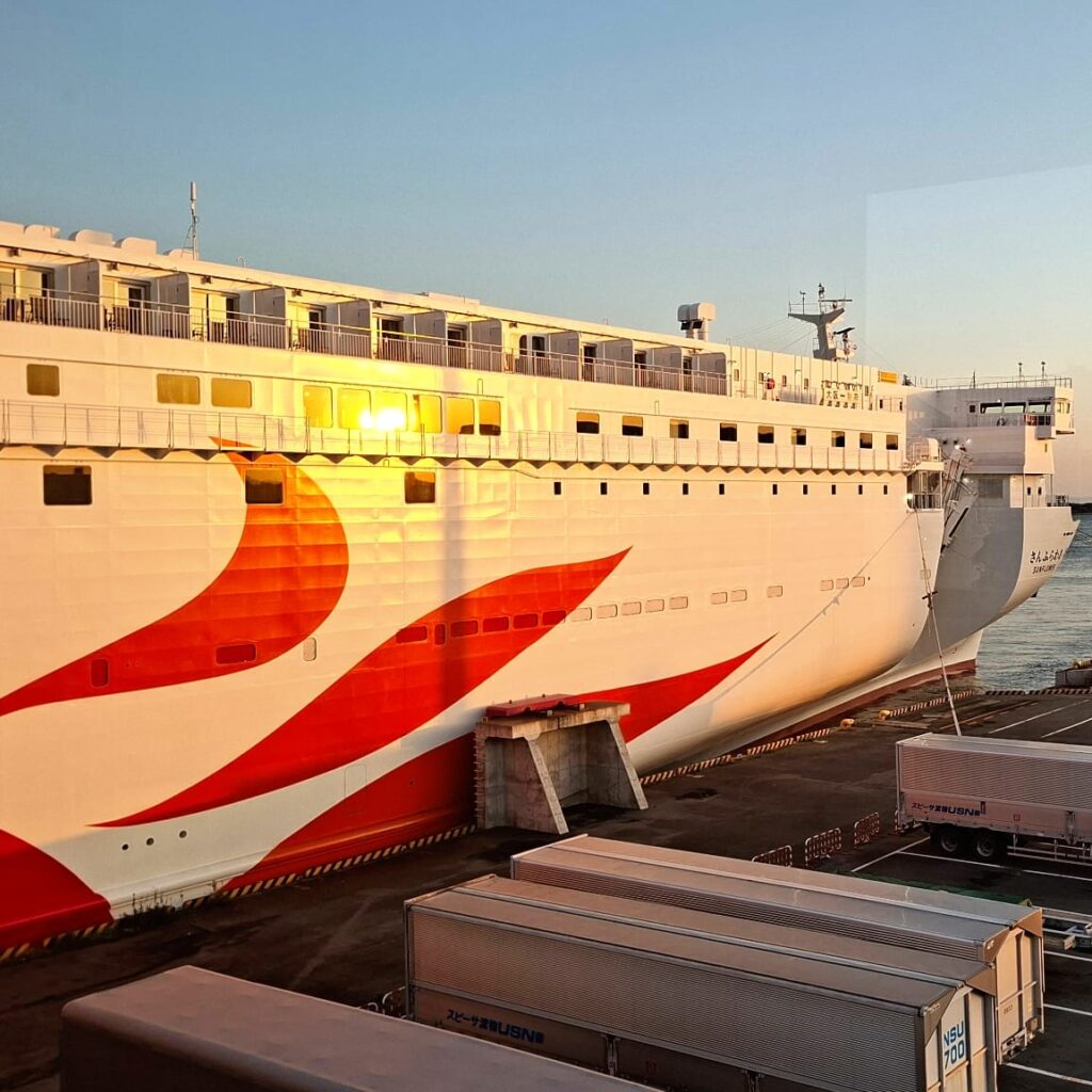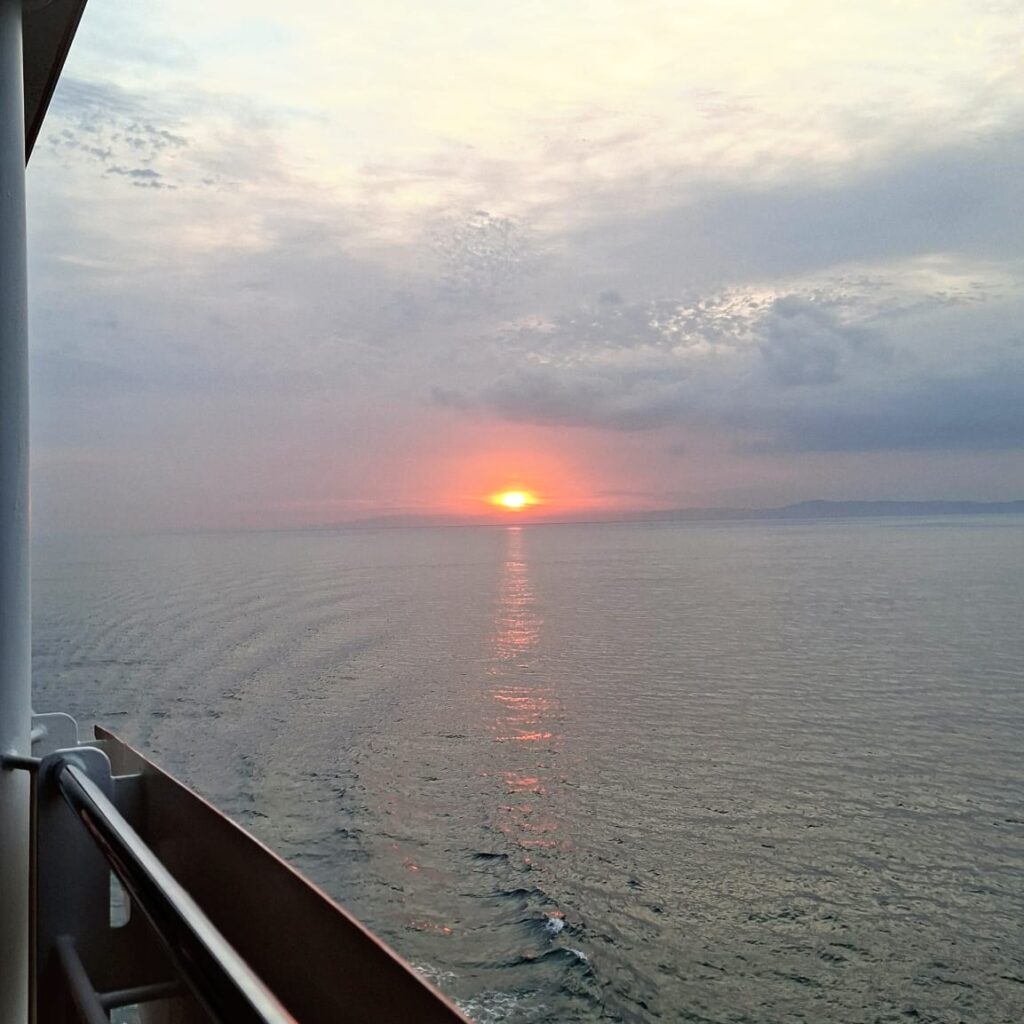 Besonders beeindruckend war es, auf der Fähre ins Onsen zu gehen. Das hatte ich auf meinen bisherigen Fährfahrten nach Griechenland oder auf italienische Inseln so noch nicht erlebt: in heißem Wasser sitzen und der Nacht beim Hereinbrechen zusehen. Wobei ehrlicherweise die Scheiben so stark beschlagen waren, dass ich wenig bis nichts erkennen konnte.