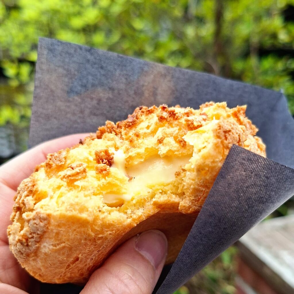 Zum Abschluss gönne ich mir einen Vanillepudding im Teigmantel aus der Patisserie Roku – sehr lecker. Das lange Warten in der Schlange hat sich gelohnt.