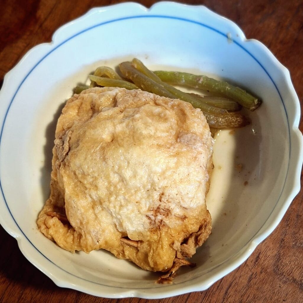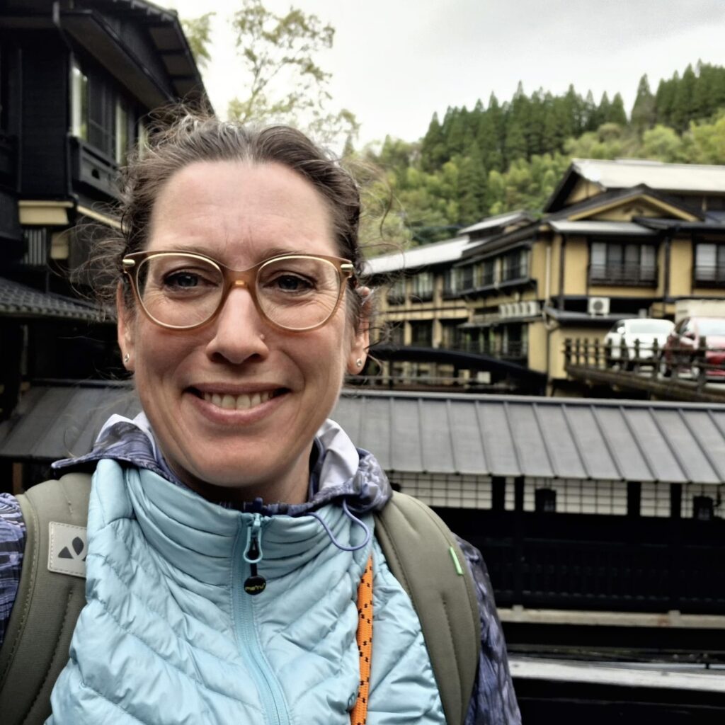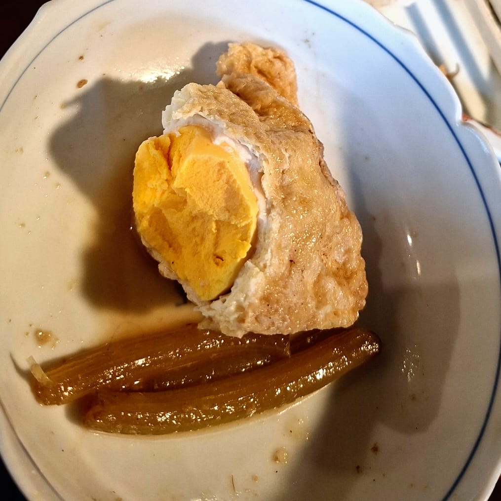 Zum Frühstück bestelle ich Mochi, das sind traditionelle Reiskuchen aus gestampftem Klebreis, unterschiedlich gefüllt. Man isst sie warm. Ohne Bestellung erhalte ich ein Ei in Teigmantel und Bohnen, außerdem grünen Tee. Und auf die Frage, ob ich Alkohol trinken würde, ungefragt auch noch ein Stamperl selbstgemachten Pflaumenlikör. Sehr lecker, wobei die Wirtin nicht mittrinkt. Aus der Vielzahl Onsenmöglichkeiten empfiehlt sie mir zwei, die ihrer Meinung nach gut zu mir passen sollen. Ich bin froh, dass sie mir die Entscheidung abnimmt, bedanke mich und mache mich neugierig auf den Weg.