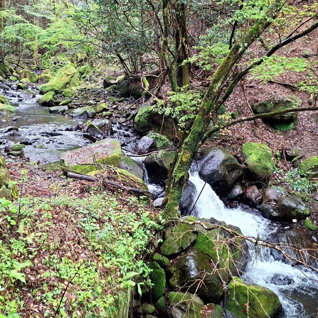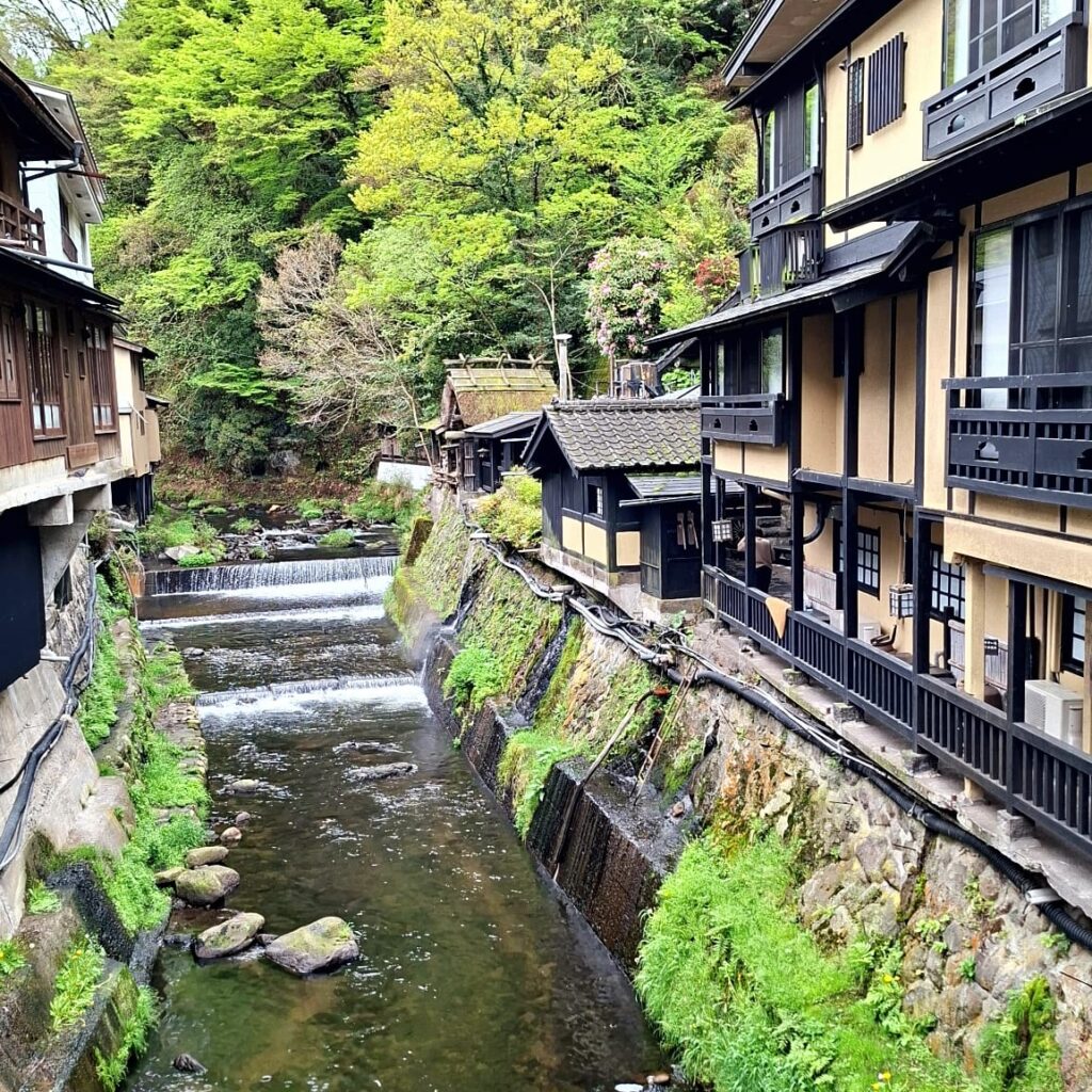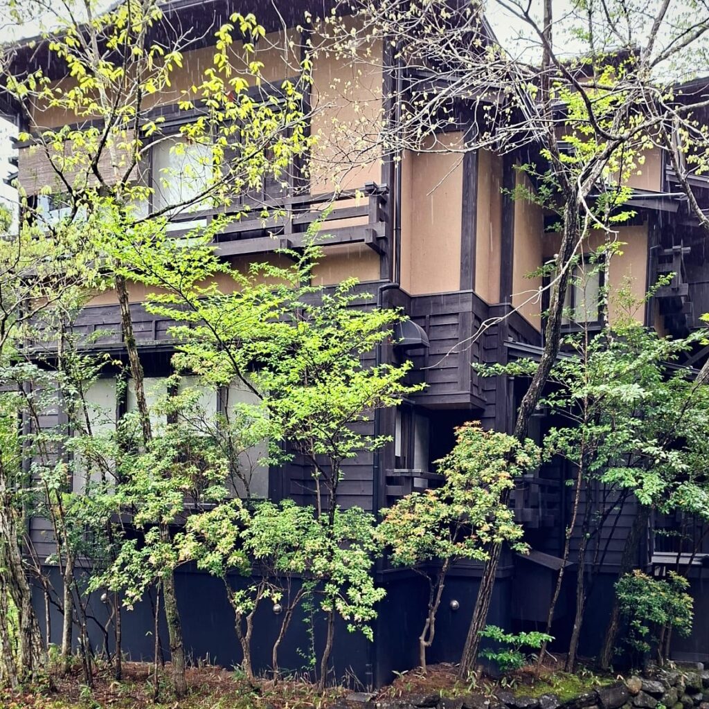 Es ist ein regnerischer Tag, die Wolken hängen tief. Perfekter Tag für ein Onsen Hopping. Ich bin in Kamakura Onsen, in den Bergen der Präfektur Kumamoto auf der Insel Kyushu. Der Ort ist bekannt für seine sehr gut erhaltene Onsenkultur, ein traditionelles Ambiente ohne moderne Architektur. Die Umgebung besteht aus dunklem Holz, Steintreppen, natürliche Materialien in schwarz, braun, grün, blau.